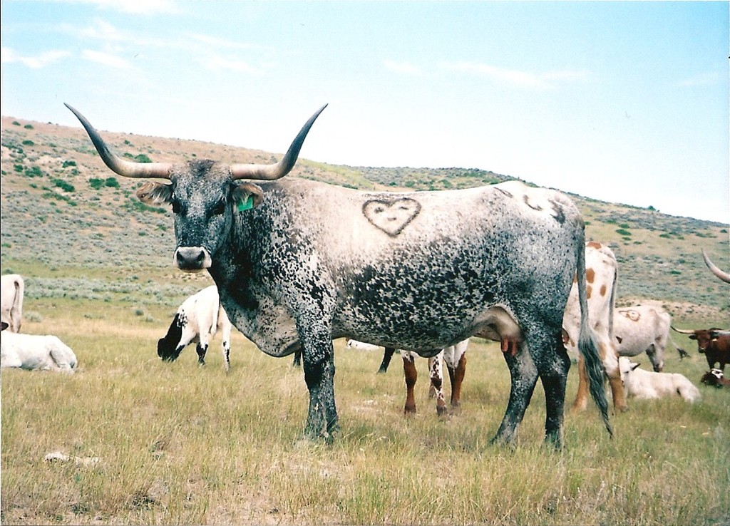 This beautiful cow is a two tone blue color.Very light blue up high and dark blue mottled down low,in her shoulders and head.We have never seen one colored like this before.Great producer.